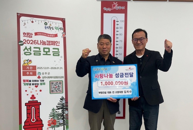 경상포커스=김경희기자부창종합건설 김치수 대표는 성주읍 행정복지센터를 방문해 희망2026 나눔캠페인에 동참하고자 성금 100만원을 기탁했다.