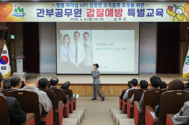 경상포커스=전상철기자경북 성주군이 간부 공무원을 대상으로 한 갑질 예방 특별교육을 실시하며 청렴한 공직문화 조성에 나섰다.