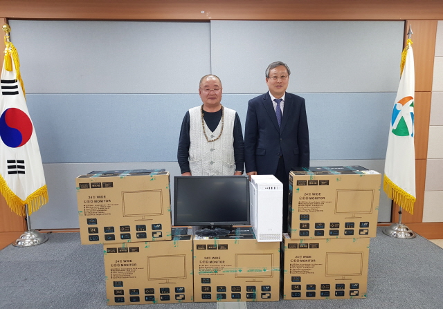 【경상포커스=배성호기자】칠곡군 동명면 기성리 법성사 자은스님은 지난 15일 동명면사무소에서 사랑의 컴퓨터 6대(800만원 상당)를 취약계층 학생들에게 전달했다.