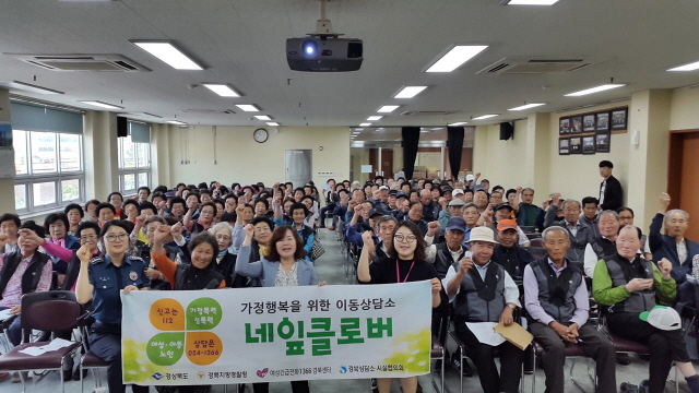 【경상포커스=전상철기자】성주경찰서는 29일과, 30일 양일간 성주군 노인회관에서 노인 일자리 창출 사업에 참여한 65세 이상 어르신 250명을 대상으로 가정폭력 및 노인․아동학대 등 예방을 위한 에 있어 이웃의 역할을 강조하고‘네잎클로버’사업에 관한 홍보 활동을 펼쳤다.