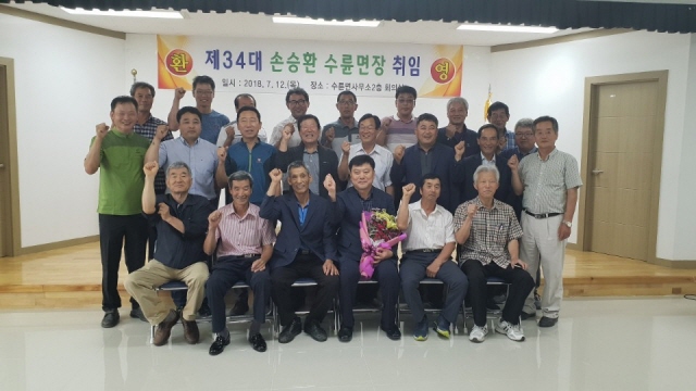 【경상포커스=전상철기자】성주군 수륜면 제34대 손승환 수륜면장이 12일 수륜면사무소 2층 회의실에서 이장 및 직원 등 40여명이 참석한 가운데 간단한 인사로 취임식을 개최했다.