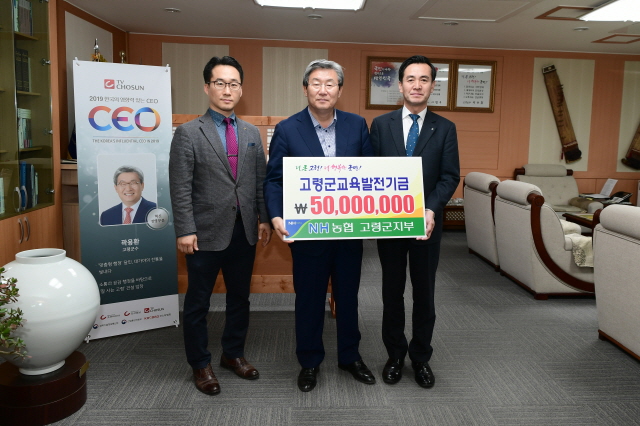 【경상포커스=전상철기자】NH농협 고령군지부(지부장 윤상갑)는 지난 20일 고령군청을 방문, 지역의 교육발전과 인재양성을 위해 교육발전기금 5천만원을 기탁했다.