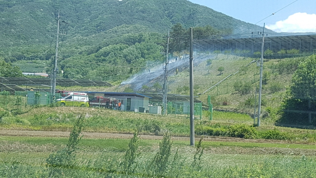 27일 성주소방서 등에 따르면 오후 12시 43분경 성주군 수륜면 한 태양광 발전 시설에서 불이 났다는 신고를 받고 출동한 소방 당국은 소방관 등 21명, 살수차 등 장비 4대를 투입해 1시간 만에 불을 껐다.