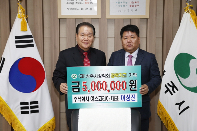 【경상포커스=김경희 기자】상주시 함창읍 함창 제2농공단지에 위치한 ㈜예스코리아 이성진 대표이사가 지난 21일 상주 시청을 방문해 (재)상주시장학회에 장학금 500만원을 기탁했다.